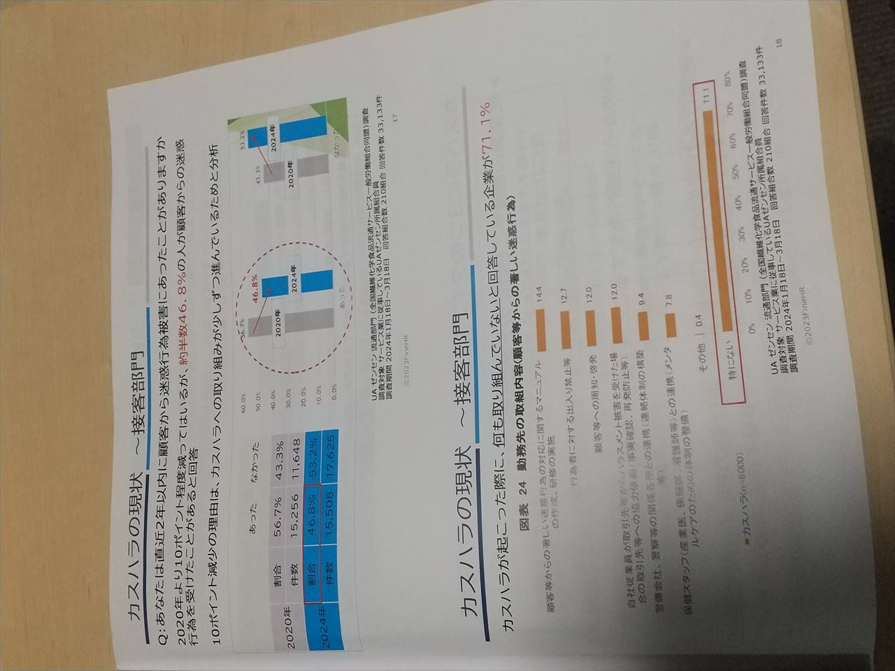 法的思考も踏まえ、体系的で実践的な大変素晴らしいセミナーでした。カスハラには3つのタイプ